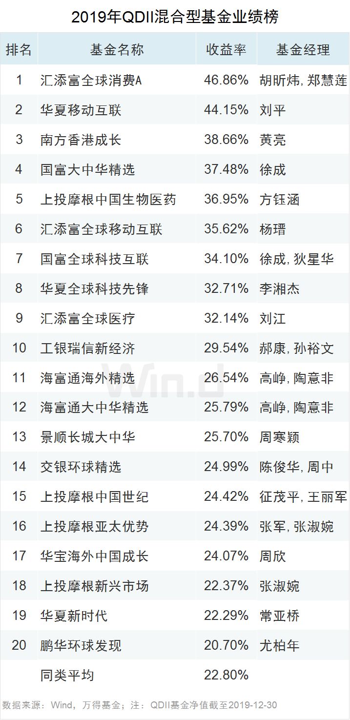QDII混合型基金业绩榜TOP20