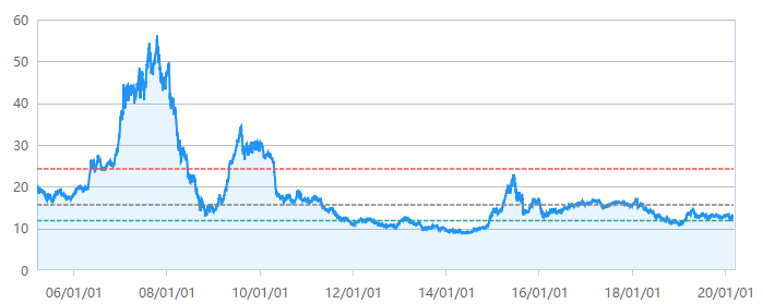 图为上证综指过去15年市盈率走势,