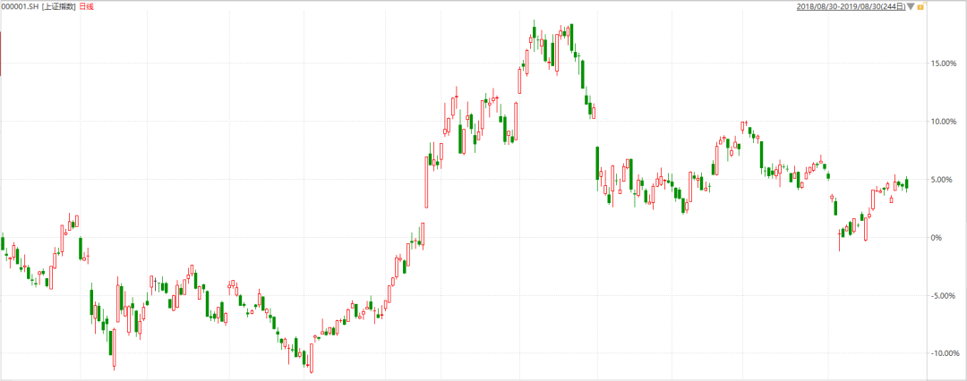 再来看上证在18年8月30日~19年8月30日的区间表现
