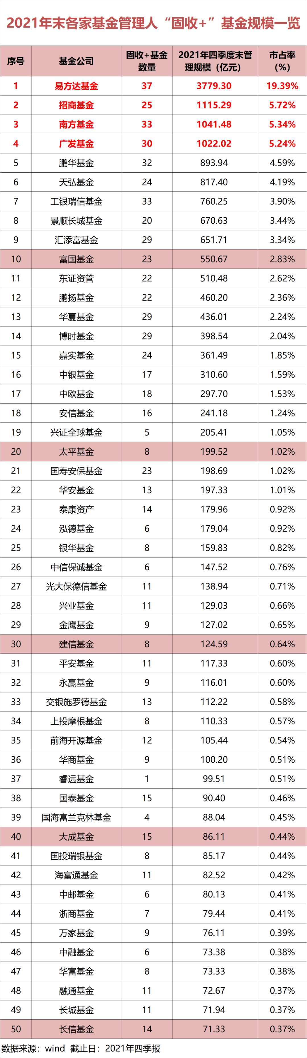 “一哥”规模接近3800亿易方达、招商、南方、广发居前四强