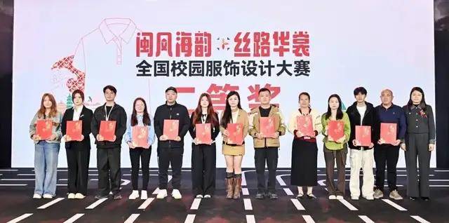 钦家合作伙伴石狮市好田服饰实业有限公司初中生运动系列“衣承筑韵,智启青春”作品获得“特等奖”;石狮市宝辉服饰织造有限公司初中生制式系列“厝檐花影 潮起青春”作品获得“特等奖”;青岛弘诚体育用品有限公司小学生运动系列“碧海童梦”作品获得“一等奖”、初中生运动系列“榕韵育少年”作品获得“三等奖”;泉州市海兴服装织造有限公司小学生运动系列“山海记忆”作品获得“二等奖”、初中生运动系列“山海记忆”作品获得“三等奖”;福建名坊纺织有限公司小学生运动系列“海丝花语”作品获得“三等奖”;犇鑫服饰 (重庆) 股份有限公司初中生制式系列“闽而好学”作品获得“二等奖”;宁波恒驰服饰有限公司高中生运动系列“潮起海丝,童行向善”作品获得“二等奖”;杭州实兴服饰有限公司高中生运动系列“闽瓷虹韵”作品获得“一等奖”。