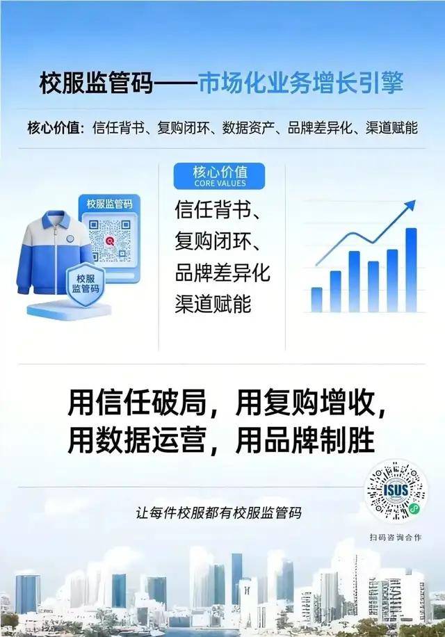 该方案通过为每件校服赋予唯一数字化监管码,实现从面料采购、生产加工、质量检测到物流配送、家校验收的全生命周期溯源,既解决了企业生产端的品质管控难题,也为学校和家长提供了便捷的校服品质查验渠道,更能助力教育主管部门实现智能化监管,让校服市场化在 “放活” 的同时实现 “管好”,为行业规范化发展筑牢数字化根基。