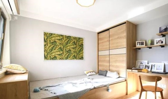 榻榻米房空间利用率更高,会更加实用,在房间内装有窗帘,睡觉的时候可以拉上,灵活又方便。