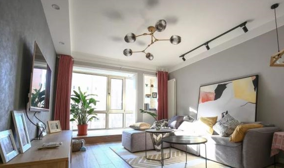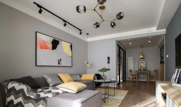 客厅的吊灯很有艺术个性,给客厅增添了不少颜值,墙面挂了一幅抽象画,更有意境感。