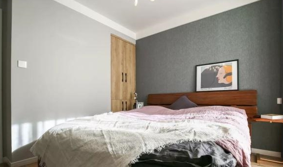 这间房布置挺简单的,亚麻的床品,灰色、粉色与白色的碰撞,给人视觉上的古旧感与舒适感。
