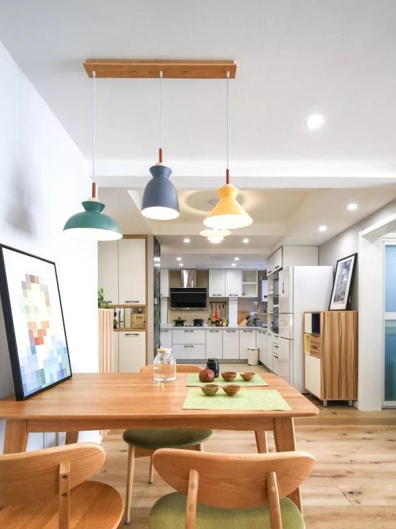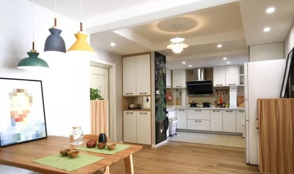 厨房同餐厅离得近,上菜也更方便,地板统一铺的是实木地板,清新自然,环保健康。