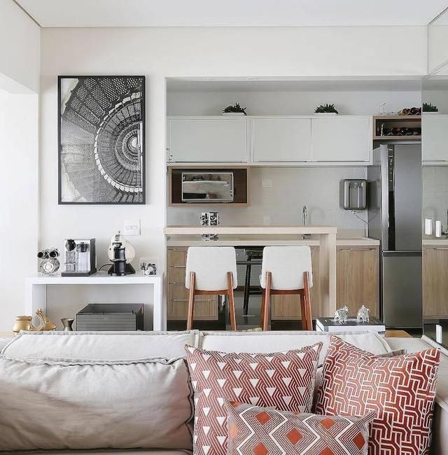 如果你家沙发墙或者电视墙后刚好是厨房,这个小半墙还能随手放点东西,厨房空间足够的,可以靠着半墙平台向厨房内延伸吧台,电视墙也是同样的道理,或者延伸出一个餐桌也行,最大的差别就是高度不同。你们觉得如何呢?