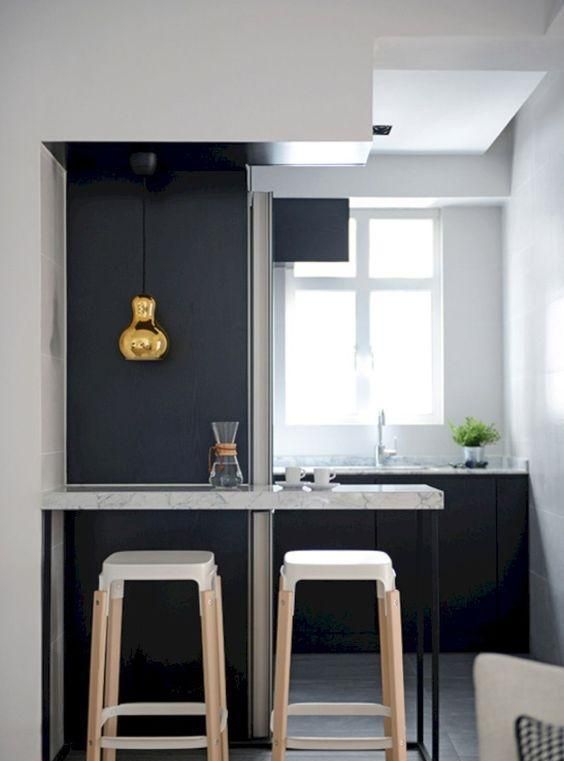 现在更多的是将增加的这条边改小吧台,增加可利用面积的同时,日常也能方便在这里用个简餐。想要收纳足的,也能在吧台上面加吊柜,或吧台腿上花点小心思,简单的就是一块L型面板,你们看着办吧~