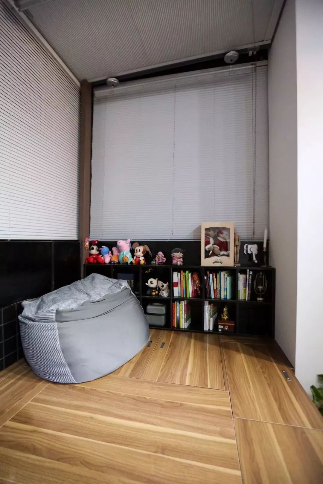白天是朋友相约的悠闲好地方与客厅连接的阳台被打造成一个多功能阳光房,定制了榻榻米床,一侧是储物柜,另一侧则做一个简约的书架,配一个懒人沙发。