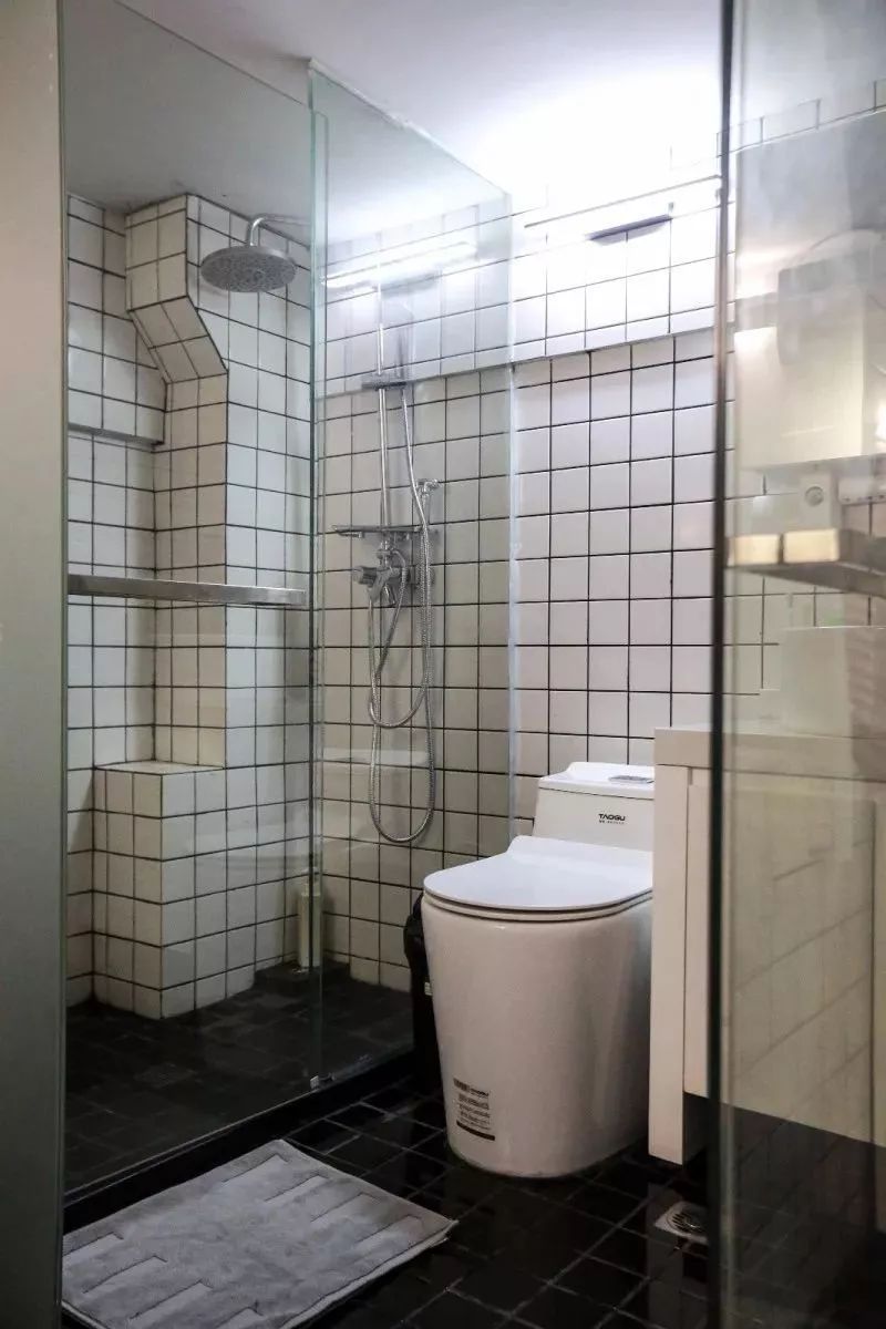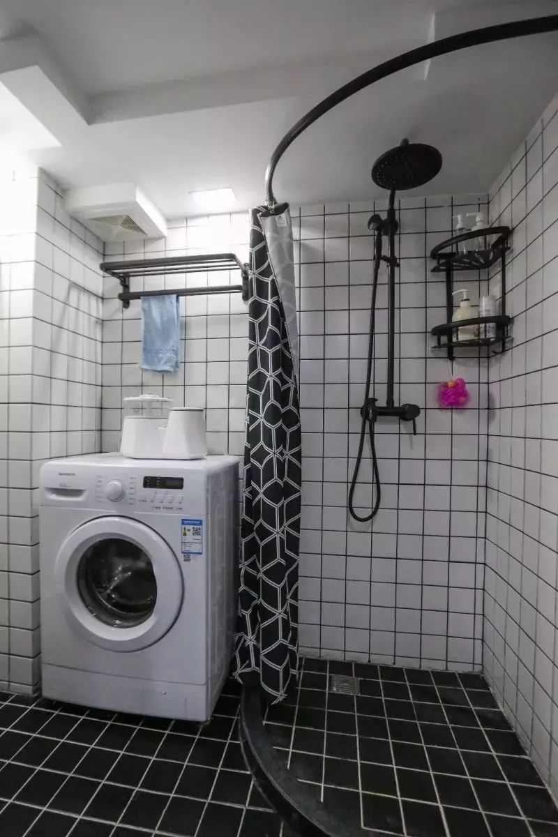 洗手台外置后,一层卫生间将洗衣区规划其中,增加了实用功能,同时通过浴帘+挡水条做了内部分区,让卫浴空间更整洁干爽,时尚舒适。