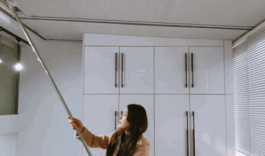 在主卧门口还为女孩打造出一个独立的拉帘式衣帽间,虽然空间不大,但里面规划的很有条理,让各类心爱的衣物、包包、鞋子等都能合理收纳,成为女孩的最爱!看完女孩这里完美的双层小豪宅,这样的生活是你想要的吗?