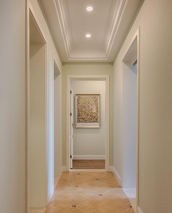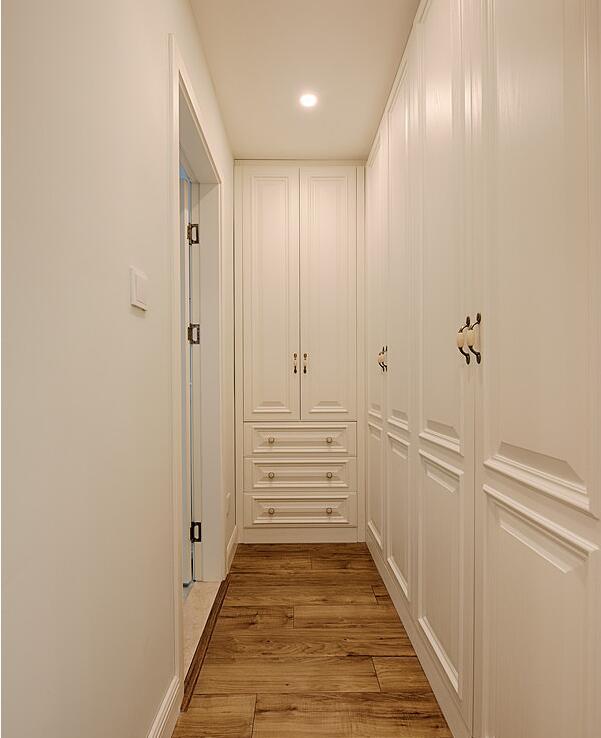 通往各个房间的走廊,没有太特别之处,墙面全部刷墙漆,踢脚板全部用的白色的,看起来比较亮堂。和客厅一样也都做了吊顶,主要是想安装筒灯照明,效果挺好看的。