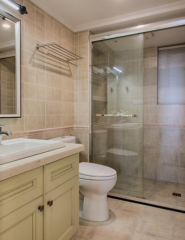 主卫就在衣帽间对面,整体布置的比较简单,头一次见浴室柜上打柜子的,不过很实用就是了,可以放很多备用的洗漱品。