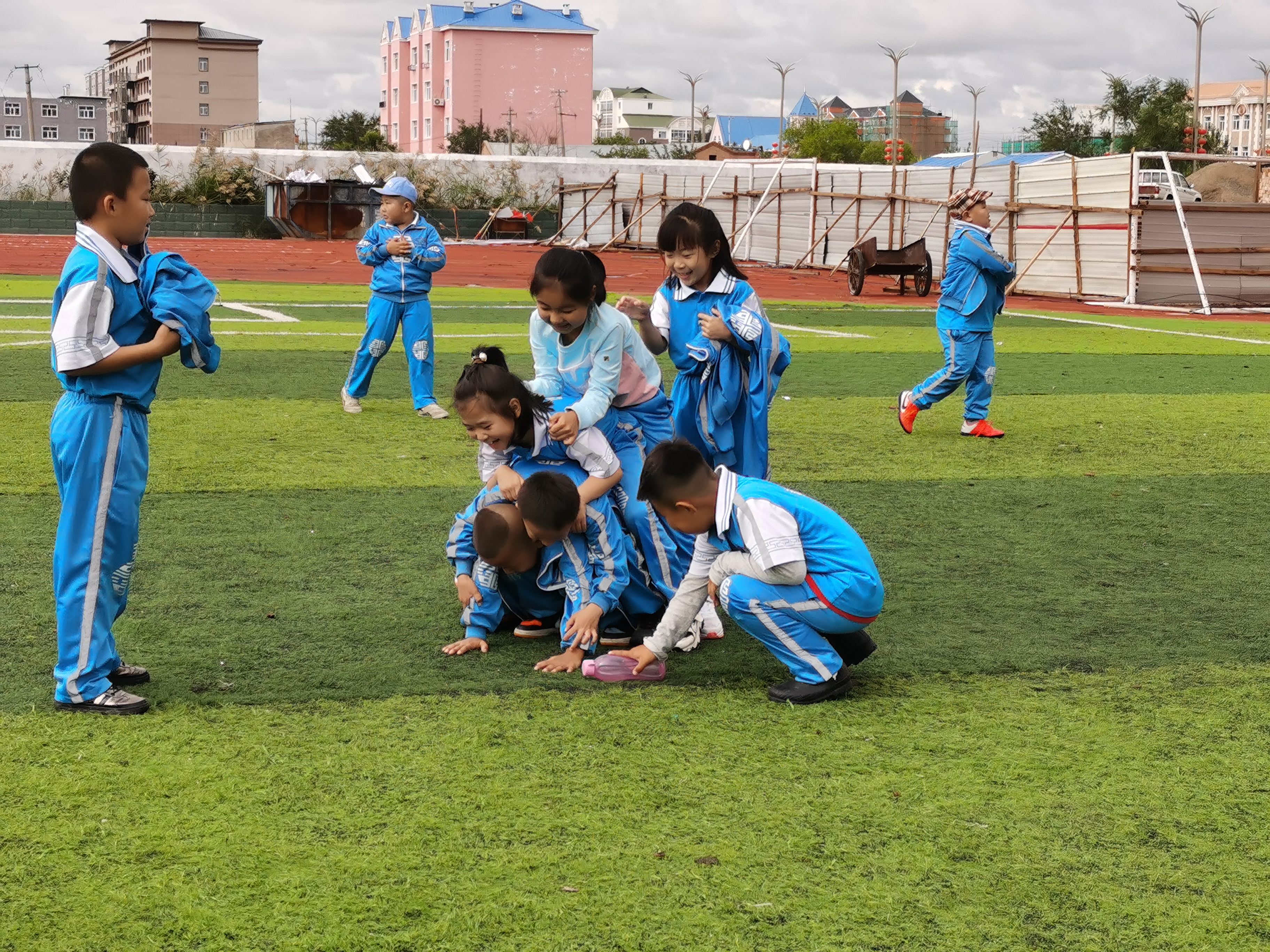 9月1日,在呼伦贝尔市新巴尔虎右旗第一中学操场上,孩子们玩起了渴望已久的“叠叠乐”游戏。(呼伦贝尔市委宣传部供图)