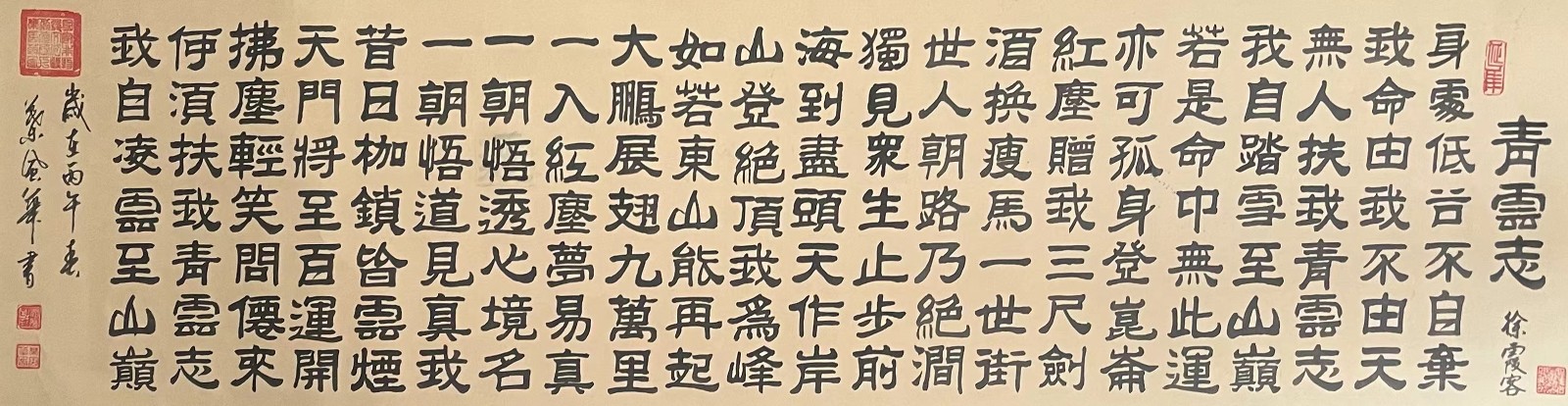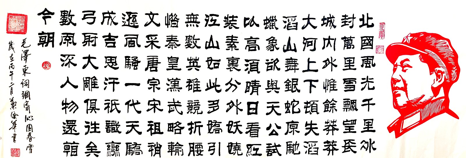 2021年参加全国书写习近平语录书法比赛,获得特奖,作品将做成碑文永久展示。